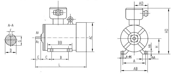 YBX3系列高效率隔爆型三相異步電動機,是在YB3防爆電機的基礎上進行了高效節能技術改進,在使用上能夠完全取代YB3防爆電機的適用性。效率符合GB18613-2012《中小型三相異步電動機能效限定值及能效等級》中的2 級能效,且具有性能優良,使用安全可靠,振動、噪聲比同類產品降的特點,符合環保要求。 YBX3系列高效率隔爆型三相異步電動機電動機防爆性能符合GB3836.1-2010 《爆炸性環境 第1部分:設備 通用要求》和GB3836.2-2010 《爆炸性環境 第2部分:由隔爆外殼“d”保護的設備》的規定,制成隔爆型。防爆標志為Ex d ⅡA T4 Gb、Ex d ⅡB T4 Gb,Ex d ⅡC T4 Gb,適用于有爆炸性氣體混合物存在的場所。 Ex d ⅡA T4 Gb 適用于工廠用IIA類,溫度組別為T1、T2、T3 和T4 組爆炸性氣體混合物存在的環境。Ex d ⅡB T4 Gb 適用于工廠用IIB類,溫度組別為T1、T2、T3 和T4 組爆炸性氣體混合物存在的環境.Ex d ⅡC T4 Gb 適用于工廠用IIC類,溫度組別為T1、T2、T3 和T4 組爆炸性氣體混合物存在的環境。